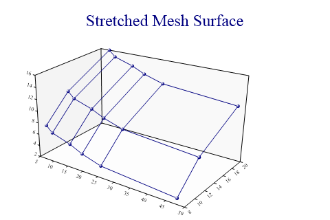 Mesh with Given X and Y Co-ordinatesThis has the same arrays for the mesh, but the nodes are placed explicitly in both X and Y directions, so the effect is to stretch the surface.